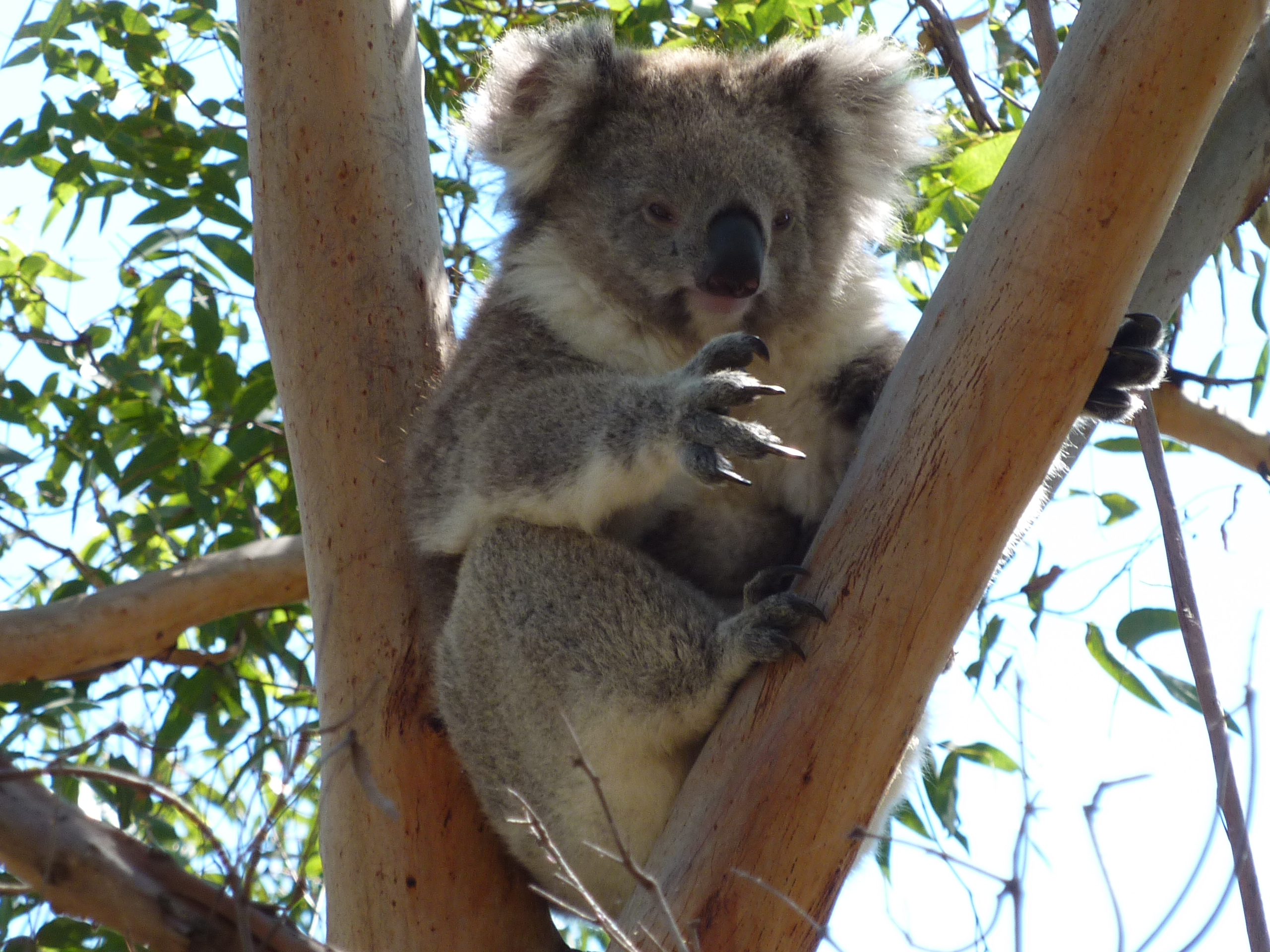 We spent all morning in a Koala nature reserve. A raised boardwalk allows visitors to get close to Koalas, which were generally asleep in branches. I suppose that I must have seen them in zoos, but they were larger, and much cuter, than I expected. Their diet of eucalyptus leaves is nutritionally poor, and so they sleep for 20 hours a day, ideal for the amateur wildlife photographer, and we must have seen and photographed a dozen or so.