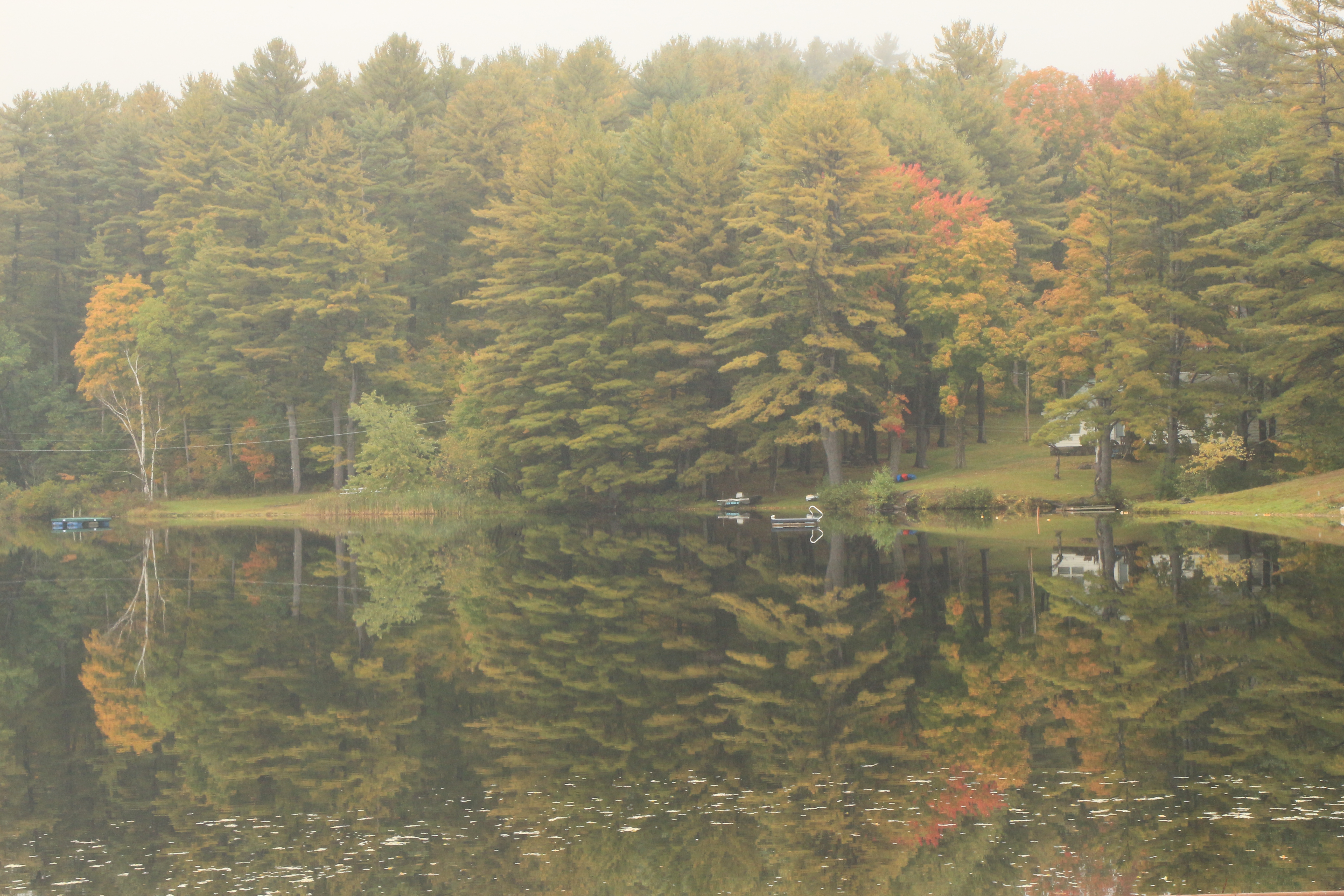 We found a delicatessen/grocery store/cafe open and enjoyed a sandwich and soft drink before going out for a lakeside stroll. It was still misty, but a brighter shade of grey, and remarkably mild. It was pleasant walk, admiring the views, looking at the boats used for trips across the lake (moored up since Labor Day), and, in Chantal’s case window shopping at the carious gift and craft shops (fortunately closed since Labor Day).