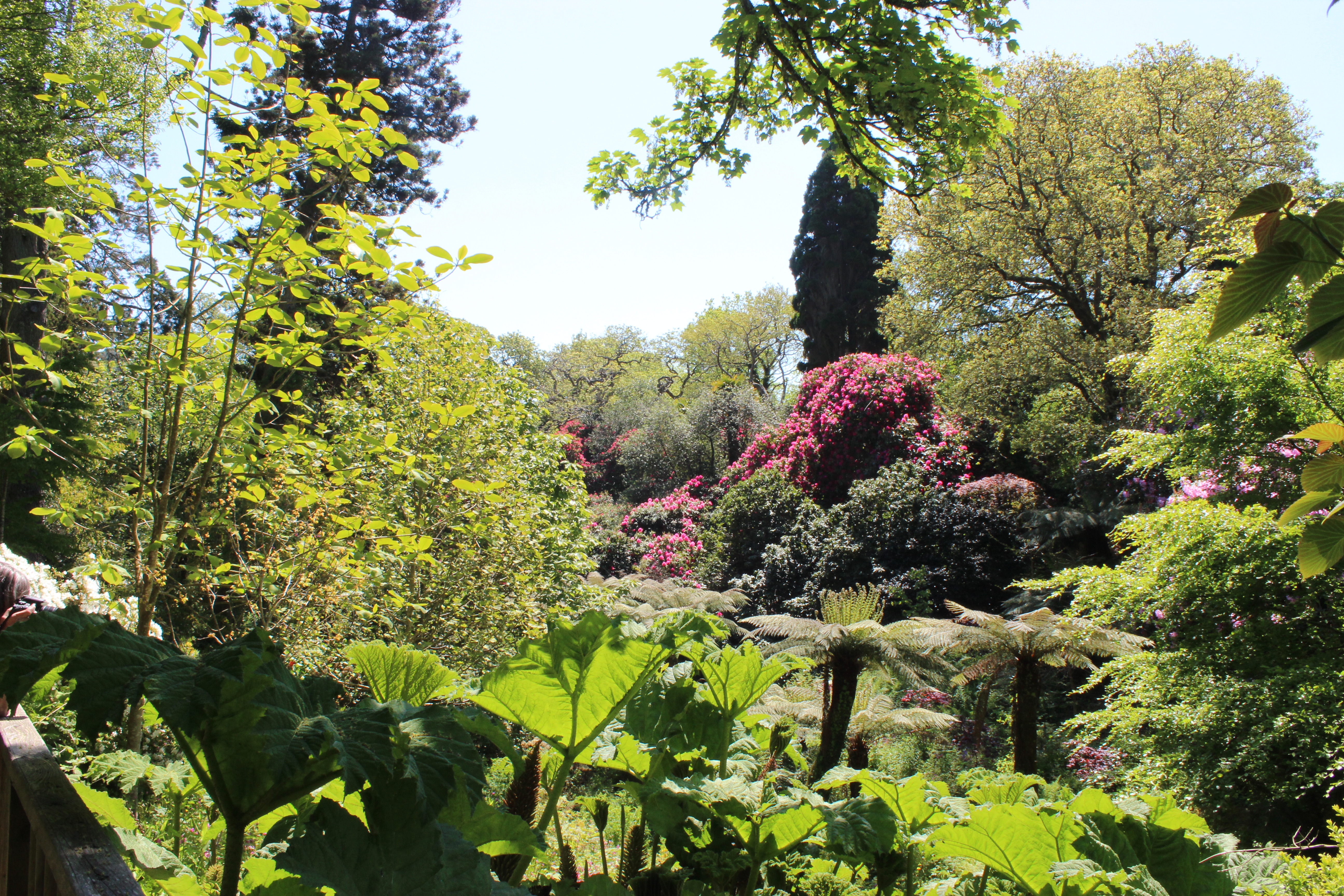 We spent a day at the Lost Garden of Heligan, 60 miles from Mousehole, but recommended by all who have visited. They are “Lost” because the gardens form the estate of a stately home that had become totally overgrown, but were “discovered” in the 1990’s, and are being restored. We walked along woodland tracks to the “jungle garden”, and Chantal grumbled that we had paid to walk along a woodland path that we could have done for free closer to home, AND we were walking under trees on a sunny day! But she became a bit more enthusiastic once we were walking along the boardwalks among the banana trees, ferns, palms and bamboo of the “jungle”, with a backdrop of huge flowering rhododendrons.
