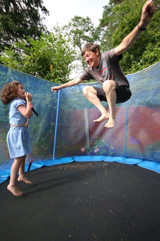 The next visit was to the school lost property office, and then to Bridget’s classroom in a fruitless search for a lost cardigan, although it was nice to see where Bridget spends her school day, and to briefly meet her (very young!) teacher. Megan was not impressed by this distraction, announcing “Hurry up – I’ve got some resting to do!”. Megan’s idea of “resting”, when we got home, did not, actually, involve resting. It involved the trampoline, grandpa and a skipping rope. I soon demonstrated my poor skipping skills, especially while bouncing on a trampoline, and we continued with the more traditional bouncing-as-high-as-possible, until I pleaded for rest, and eventually insisted on it.