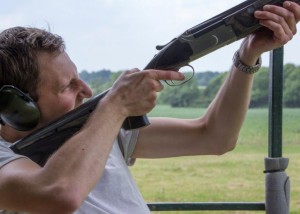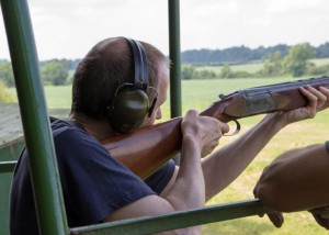 We each had 25 shots, taken 10 at a time. The first 10 were fired at clays launched diagonally across the field in front of the gun. For the second 10 shots the clay was ejected vertically from behind a grass bank, simulating a startled bird flying vertically upwards. The bird need not have worried – its chances of survival would have been pretty high. For the final 5 shots, the clay skimmed across in front of the gun, and had to be tracked before being shot.