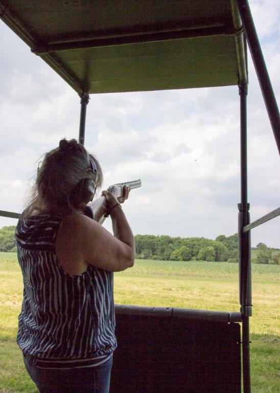 After signing in, we headed to the shooting area for instruction, and then spent a happy couple of hours (or in one or two cases happy once they had got over the stress of firing a real gun) firing at clays being launched from various directions after whoever was shooting had loudly commanded “Pull!”.