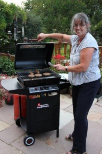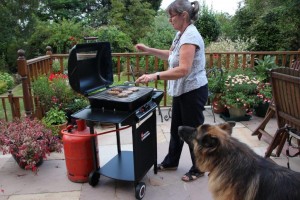 Two hours later we had a fully functioning barbeque, just as well since we were both starving – all we had to do was connect the gas bottle. Since our hob in the kitchen runs off a gas bottle, we have two bottles – one in use, and a full one as spare, and I brought the spare one to the barbeque and went to connect the gas pipe, only to find that our bottles were larger than normally used, and designed for a different regulator to that supplied with the barbeque. Chantal would not entertain my proposal to cut off the BBQ regulator, and attach our spare large one, despite me assuring her that it would be fine.