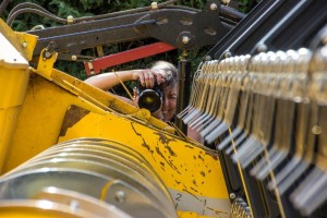 On Saturday we all went on a dog walk across the fields at the back of our house. The combine harvester has been at work the previous day, and was parked up by the gate – the dew on the remaining wheat meant that there would be no harvesting until later. Chantal photographed the combine, and I photographed Chantal photographing the combine until she shouted “Get Out of my Shot!!”, and Daniel and I retired hurt to go and taste the nutty grains and see the flour inside, of the wheat which was still standing.