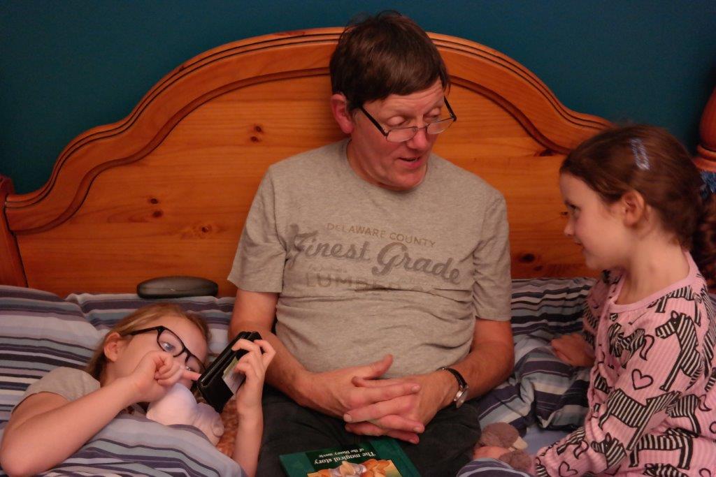 The Hands arrived late on Sunday evening, and so Bess and Florence went straight to bed, allowing the grown-ups to catch up over a beer or wine. Om Monday morning we awoke to heavy rain, typical weather for an English Bank Holiday. This had been forecast and so I sought advice from a colleague with a young daughter, and so after breakfast we headed to a recommended soft-play area in Hinckley, although not until Grandpa Coops had read the girls a story. Grandpa Coops loves reading stories, and all four granddaughters humour him by allowing him to do so.