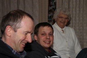 This year rain threatened, and then delivered heavy showers, and we erected the gazebo on the patio, over the patio doors, with people making use the kitchen, study, patio and garden, and in the case of the children, one of the bedrooms, depending on what the sky was delivering. If I recall correctly, there were 20 of us, including 4 granddaughters. Unusually I had two mother-in-laws in attendance – Dad brought Edwina, Lynn’s mum.