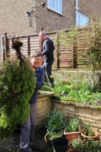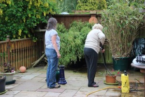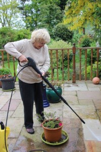 Since we had the annual family “birthday bash” the previous weekend (and we were the only participants in the event that are still working full time) I took Friday off for garden tidying purposes. It took two long days to reach what I felt was an “adequate” standard. We have recently purchased a jet-wash, which made a wonderful job of the patio, but I learned not to jet-wash any path with mud between the stones. After trying to clean the small crazy-paved path that runs behind the plants at the side of our garden I was covered from head to toe in mud, as were all the surrounding plants, which were still specked with brown during the open day. Oh well, it was a learning experience.