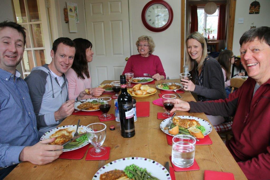 We returned to join the others for a barbeque – Ian is taking on the responsibility, bequeathed from Duncan, as family Barbequer-in-Chief, specialising in steak. The warm day had turned chilly, and so we ate in Ian and Svitlana’s cosy dining room.