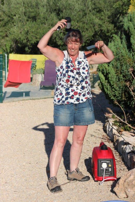On Monday Chantal popped along to our local hardware store to buy a smaller gas bottle with the appropriate regulator-fitting.  “Why don’t you cut  off the BBQ regulator, and attach your spare large one?” says the chap in the hardware shop,  “It will be fine!”. “That’s what my husband said.” mutters Chantal, and that is precisely what we do, and we enjoyed a first class BBQ in the evening sunshine.