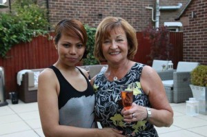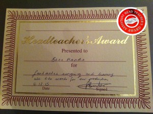 Megan’s schools was the first stop, where the children stayed with the teacher until they had spotted their mum or Dad. Megan scanned the large group of waiting parents and suddenly grinned and shouted “There!” pointing to us, and being allowed to run to us to give Grannie a big hug. Next stop was Bridget’s school, where once again children were looking out for parents, and this time it was my turn for a big hug after Bridget spotted us and sprinted across the playground.