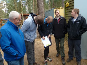 Nine of us met at Sherwood Pines activity area, and started with Segway.  I’ve never done this before, and looked forward to it. We signed to confirm that we knew that this was a high risk activity, although it was not anywhere near as risky as some of the activities that I’ve been persuaded to perform over the years by my Scouting/Scraggy Crow mates over the years. Embarrassingly the form included a box for age, and there was a double-decade leap when it came to my entry. Kate’s Dad, Melv, took part, and between us we dragged up the average age significantly.