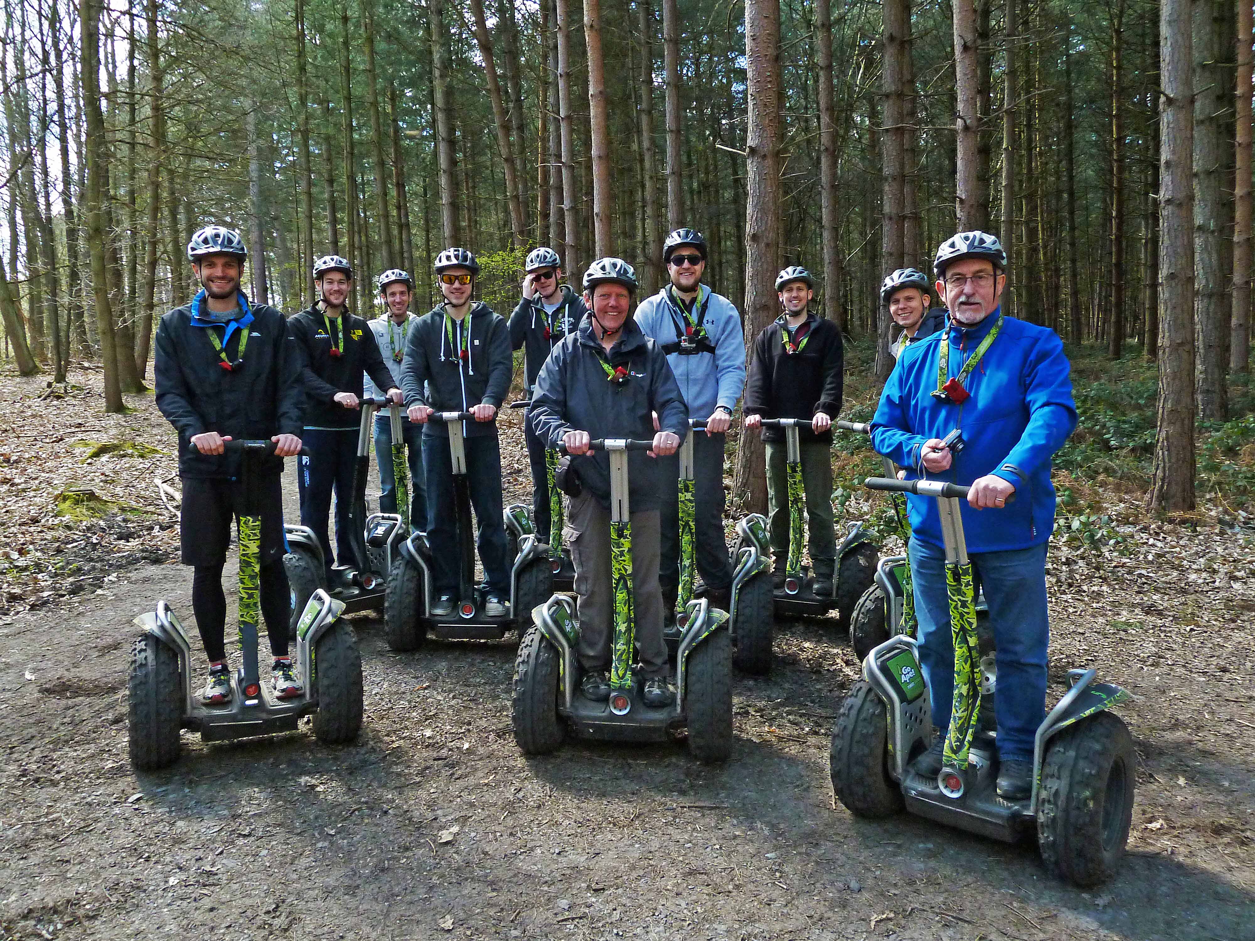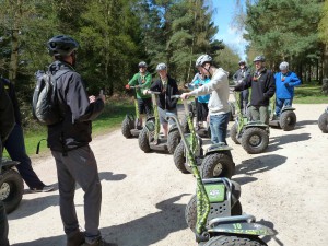 Each of us was introduced to our Segway, and after a couple of circuits practice in a safely fenced off area we were allowed out onto the forest tracks, busy with families, dog walkers and cyclists. Acceleration was by shifting weight onto your toes, slowing by leaning back on heels. We proceeded at a heady maximum speed of 12 mph – attempting to exceed this resulted in the “handlebar” moving back towards you, shifting the weight back which effectively limited the speed. I experienced this somewhat disconcerting manoeuvre a few times.