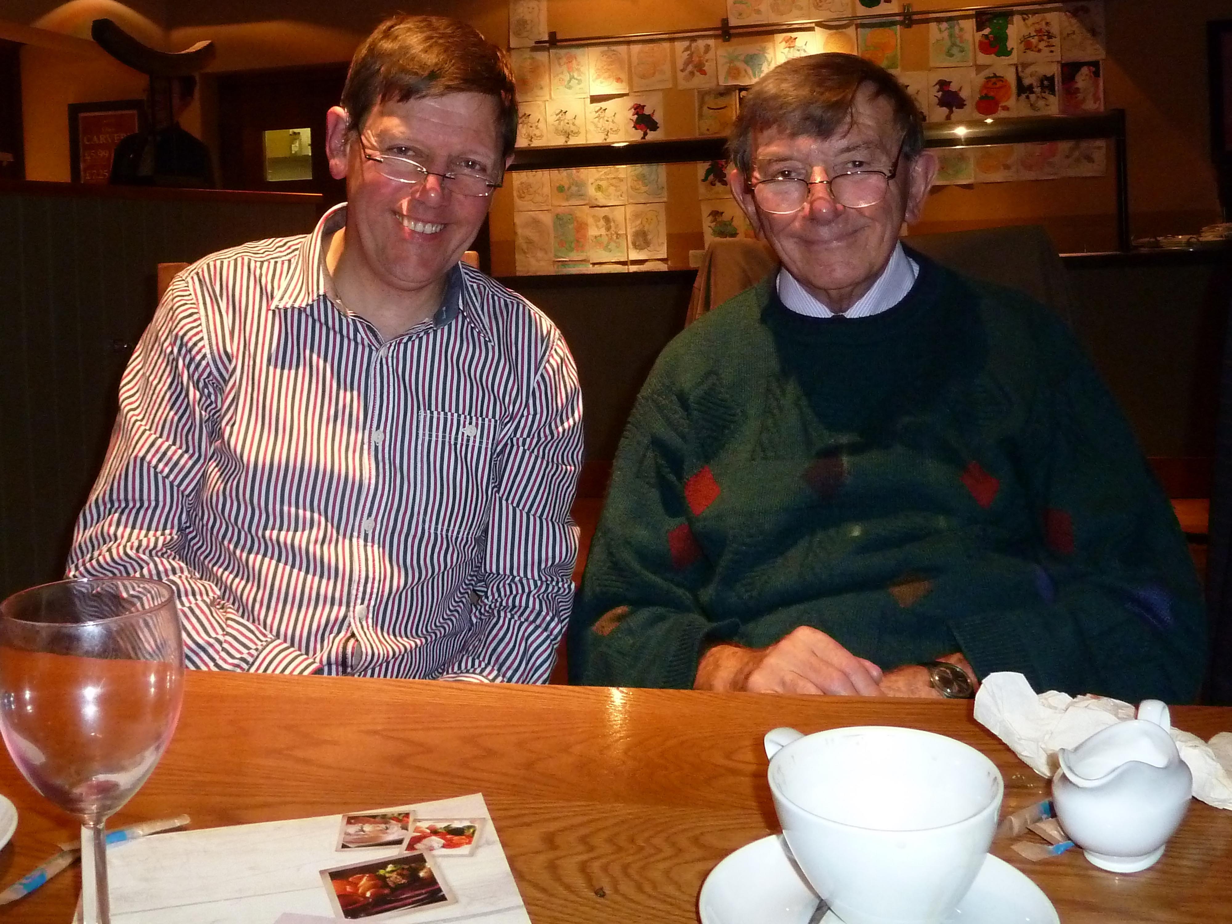 Anyone who has known Dad well recently will know exactly what I mean if I say “Should have gone to Spec Savers”. Dad was certain that another optician in the town, who had served Dad perfectly well for very many years, had prescribed the wrong lenses, and a no doubt innocent remark during a subsequent visit to Specsavers confirmed this as far as Dad was concerned. Our suggestion that maybe the problem was his habit of keeping all old specs, and sometimes picking up the wrong pair, was rejected. I know that he shared this grievance with many of you on many occasions.