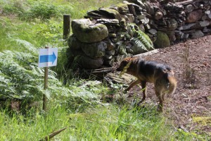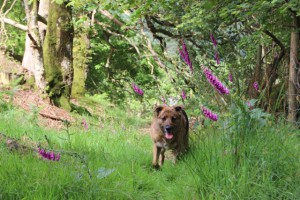 By the time Chantal settled down to watch the Wimbledon men’s tennis final I’d had enough chilling, and Tia and I explored a local footpath that led up through the woods at the back of the cottage. I have subscribed to online OS maps and so tried the app out on my i-pad successfully (although I wouldn’t rely on it if a map is essential for a walk).