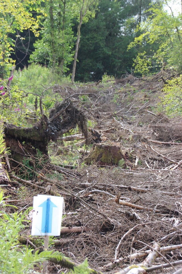 The woodland walk was pleasant enough, although parts went through areas of tree felling (although no working on a Sunday), and the path was diverted with clear arrows. Despite this we decided to turn around when the footpath covered in deep “brash” as it climbed a hill.