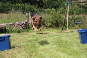 Chantal was feeling a little under the weather yesterday and spent most of the day inside doing photography. During the drier interludes I spent some time “dog training” – a length of copper piping from Steve’s (our friend who owns the cottage) workshop became a convenient jumping pole for Tia, and even Lesia joined in with a bit of very short distance retrieving of a ball.