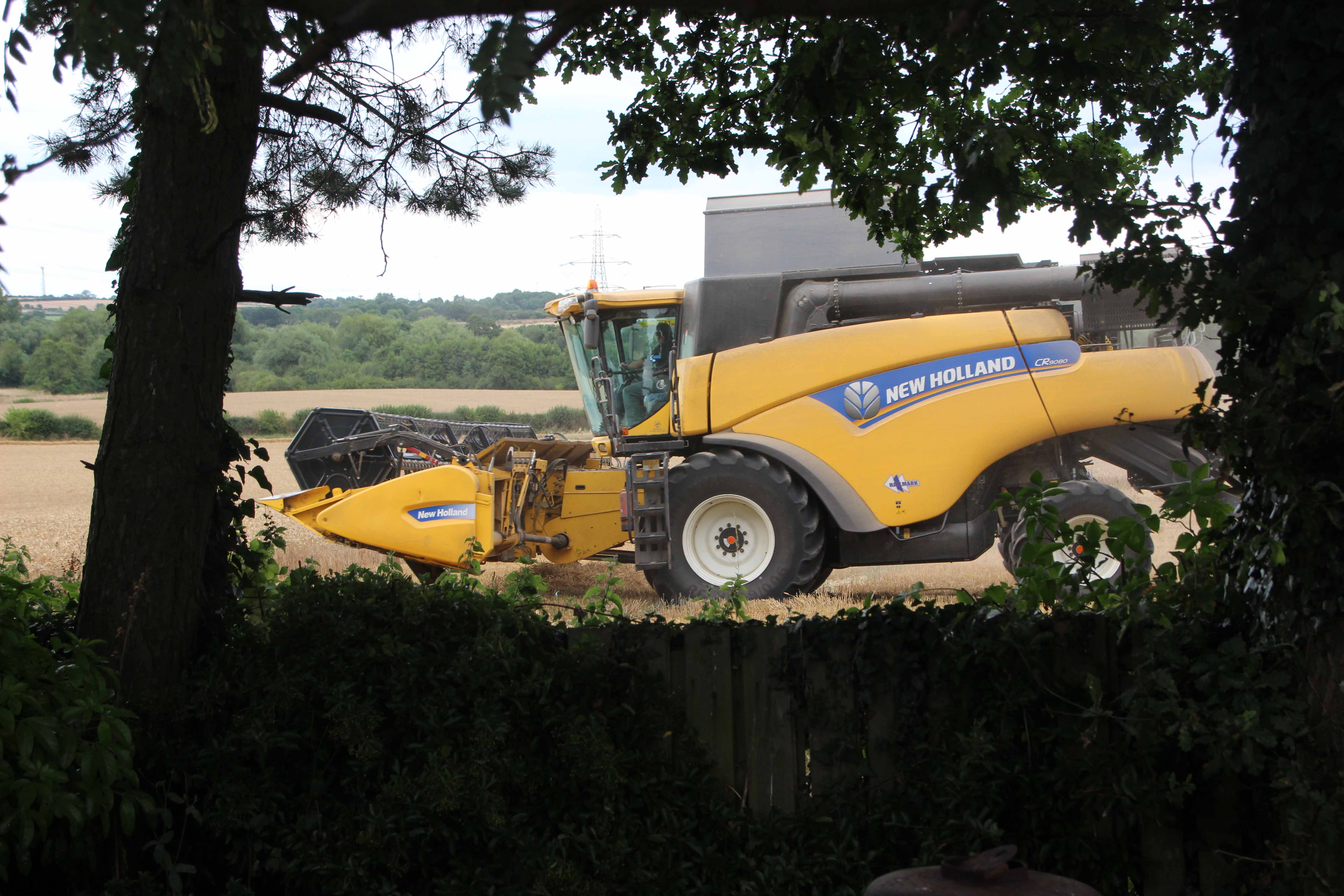 By the time that we got into our back garden the combine was rounding the corner at the end of our neighbour’s garden and trundling directly towards our garden fence, perfect for photos before it did a right wheel along the back of the neighbour’s gardens.