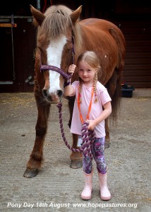 Thought you might like to see this picture of Bess on her pony day.  She spent the day doing horsey based activities, mucking out and grooming.